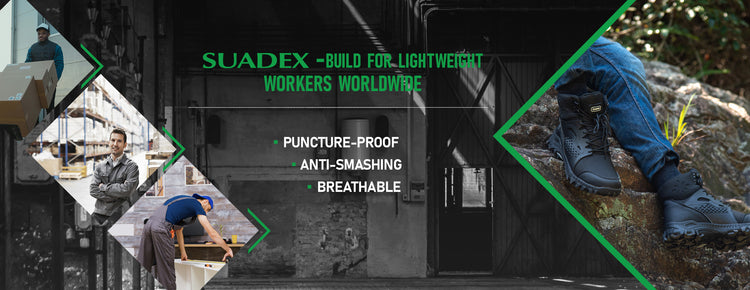 Since our founding, SUADEX has connected deeply with light-duty workers,understanding their unique challenges and providing footwear thatenhances their work and daily lives.