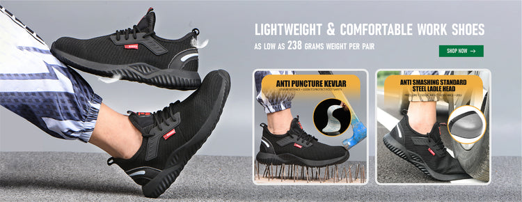 Product Description Anti-smashing: Steel toe shoe can help to protect feet from falling or rolling objects. Anti-piercing: Indestructible shoes with lightweight Kevlar-midsole Prevent...